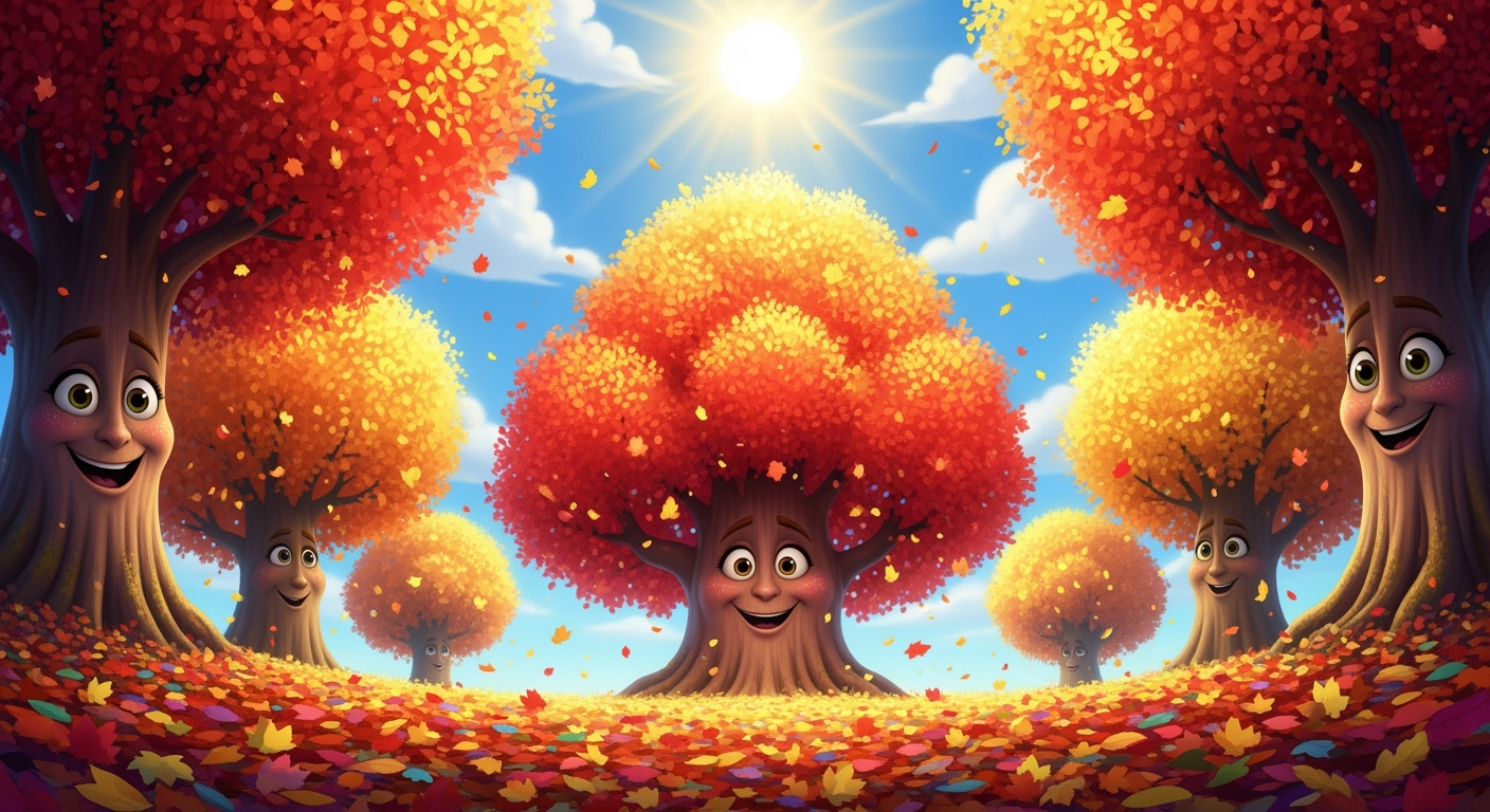 Did you know that trees are like giant calendars? They always know exactly when autumn arrives, even before we do! They start preparing for winter by making their beautiful colors and getting ready for their long, peaceful sleep.