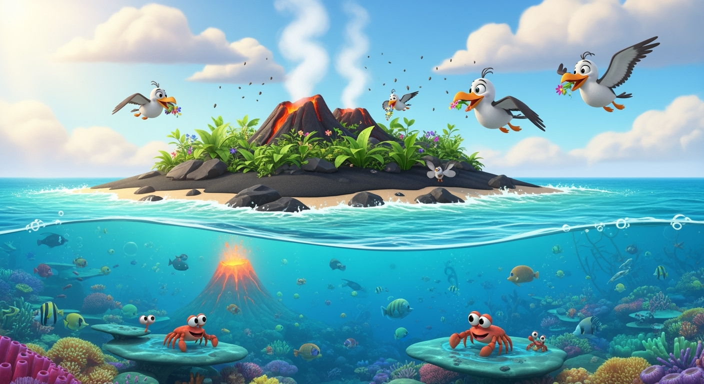 It’s like the birds are the island’s very first gardeners! They plant the first flowers and trees without even knowing it. Then the wind becomes a delivery service, carrying more seeds and spores from far-away islands and continents!
