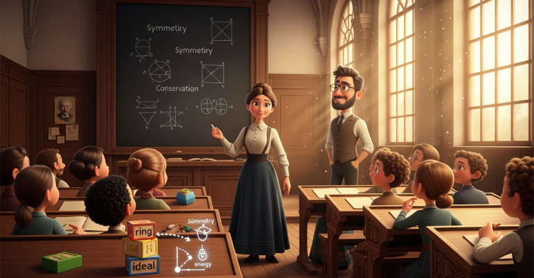 Picture a young woman walking through cold stone hallways in Germany, over 120 years ago. She carries a notebook filled with numbers and symbols that dance in her mind like magic. The professors don’t want her there. The rules say women can’t study mathematics. But Emmy Noether doesn’t give up. She sits quietly in the back of classrooms, writing down every brilliant idea she hears. Little does anyone know that this determined woman will become one of the greatest mathematicians who ever lived!