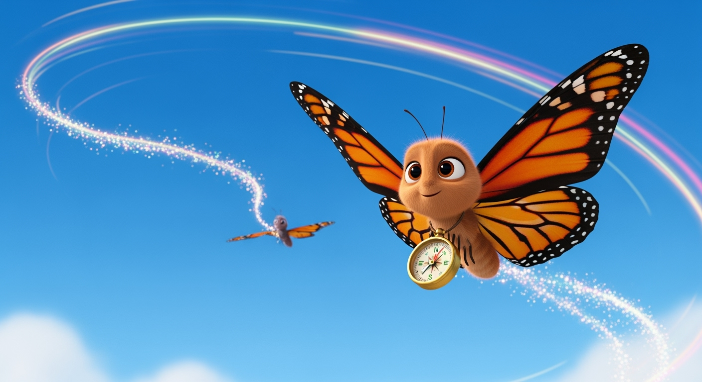 You might be wondering: “What if it’s cloudy and they can’t see the sun?” Don’t worry – these butterflies have superhero vision! They can see special invisible patterns in the sky that our eyes can’t detect. It’s like they’re wearing magic glasses that show them secret arrows pointing the right way!